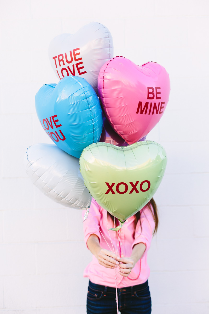 Helium balloons are a cheap way to deck out your home for a Valentine’s Day party. Find some pastel heart ones and red alphabet stickers to recreate the funnest balloons you’ve ever seen. (via Studio DIY)