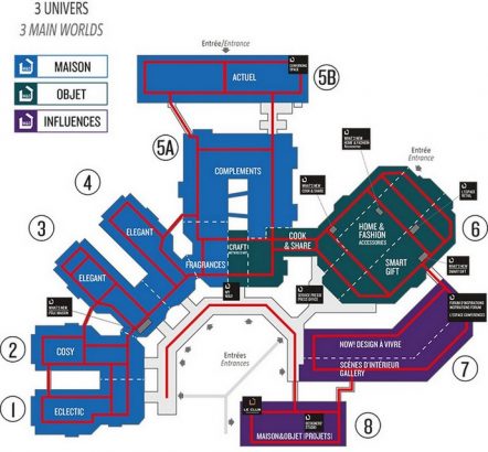 Below, you can see a show map highlighting the three worlds of the esteemed trade show. MAISON&OBJET PARIS now offers a clearer perspective of three main areas: MAISON and its wide range of interior decoration, organised into different worlds; OBJET, the show’s concept store, ideal for retailers; and finally INFLUENCES and its unique itinerary. A new offer that has been created to facilitate communication and the unearthing of new products.