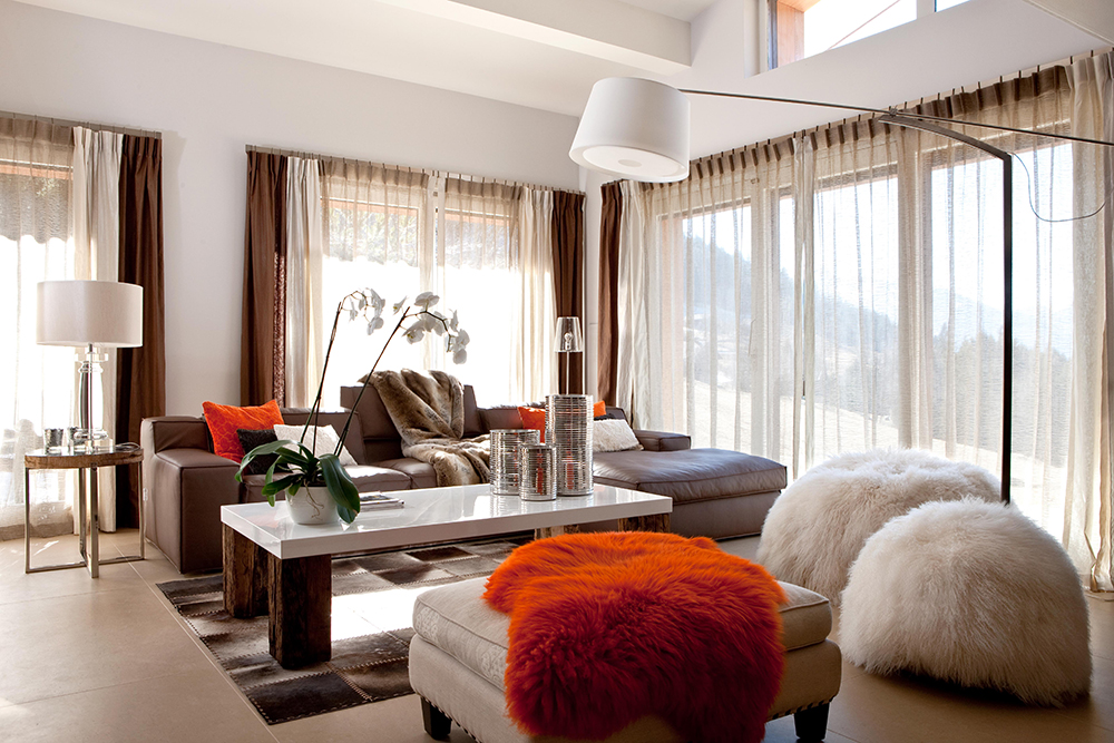 A simple and clean contrasting shade to pair with brown would be that of a crisp and bright white. The two create a unique charm and drama to every shade but also plays a part in creating a very traditional and welcoming scene.
