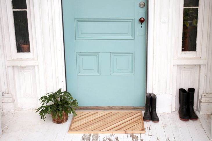 Many porches don’t house a welcome mat because of how little time it looks nice. Creating a wooden doormat like this one will give your entry that little bit of flair while being easy to clean when the mud gets too thick. (via The Merrythought)