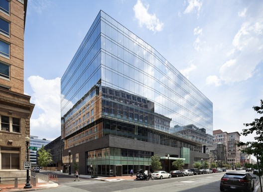 The Design team carefully considered how to best respond to the site context of the Martin Luther King Public Library (Mies Van Der Rohe’s only building in Washington, DC), St. Patrick’s Church, the old Woodward and Lothrop Department Store Building, as well as the Mather Building (another award-winning project by this Architect). They wrestled with the challenge of combining the programs and objectives of both their clients into a single, clear vision. The result is a tightly crafted building that is at once quiet and contextual, while also powerful and iconic.
