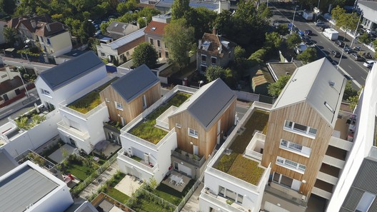 From the architect. The challenge of this project in Nanterre is to create a piece of a city that manages to connect the historic downtown, the surrounding city houses, and the recent, very dense construction projects in the new Sainte-Geneviève mixed development area. As a hybrid between urban development and architecture, its layout redevelops the connections between seemingly dissimilar urban textures, stitching the disparate pieces of the same city together.