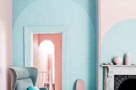 If triangles are your thing, then you have to have a look at this beautiful bedroom paint job from Archana, which perfectly matches the pink and gray decor too. A very similar look with almost the same colors is created in a dining area from Poligom.
