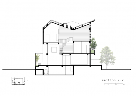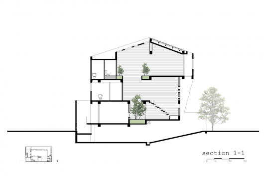 The house, which contains many functions, requires to be flexibly designed. The space is carefully considered to create the inside yard, like “a heart”, that separates function areas by natural factors. Beside that, bringing the sun and the rain into house is so interesting. It really aspired people, gave them effort to work, to play music, to cook, to meet friends and party together.