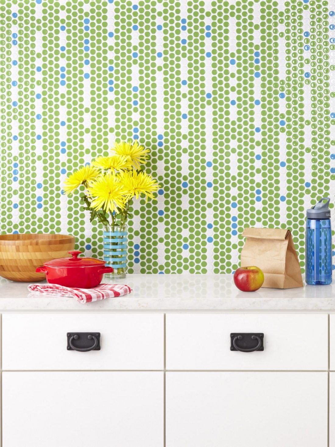 7. Penny tiles are offered in a variety of colors and styles – mosaics as well as solids. This pistachio kitchen backsplash has a refreshingly retro vibe. White grout helps the tile color pop while quietly emphasizing the appeal of the individual round tiles themselves. Love it!