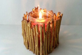 If you can’t find any large logs to use for candle holders, you can get a similar look by purchasing some candles that come in plain glass holders so that you can glue some smaller twigs around it. It’s pretty self-explanatory, but you can see this project on Instructables.