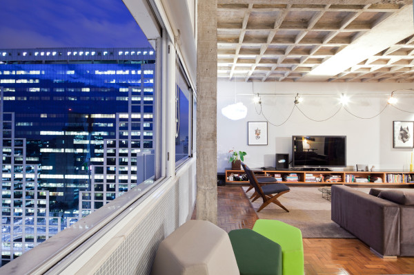 A top floor apartment in an iconic 1950’s building in São Paulo, Brazil was in need of a major update for today’s lifestyle. Architect Filipe Ramos was hired to tend to the needs of the owner, a young man, who works from home several days a week and also travels quite a bit.