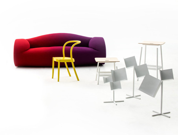For its final version, Moroso is presenting Glider with more softer and rounded lines making it a cozy place to relax in whether you choose the rocking or stable version. Designed by Ron Arad, the sofa will be upholstered with the Blur fabric (remember Marc Thorpe’s Blur Sofa?), which is produced exclusively for Moroso by FEBRIK in this red-purple gradation.