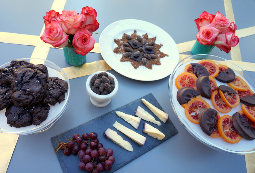 And of course, you’ve gotta have a cheese plate to counteract all of that sweetness. I chose toscano cheese soaked in syrah, also from Trader Joe’s. Can you tell that my obsession with this store is almost as intense as my obsession with chocolate?! The grapes are a decadent addition.