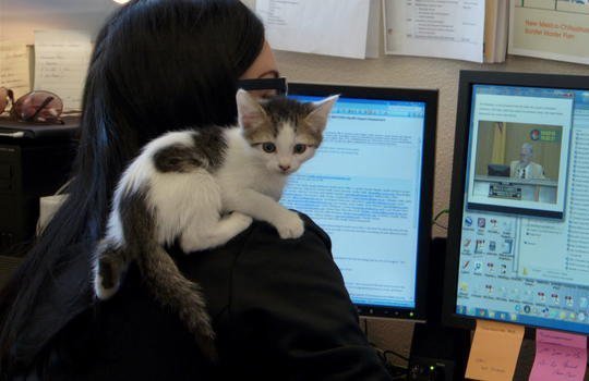 Forget about gourmet chefs and nap rooms and ping pong tables. An office in New Mexico has possibly the best work perk of them all: a kitten library. Yes, you read that right.