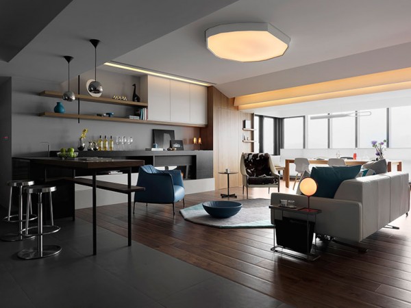 Accessories in the kitchen and dining room revolve around the idea of those smooth clean lines. White molded chairs, an overly simple dining table and polished chrome barstools sacrifice nothing when it comes to style but never detract from the bigger picture, either.