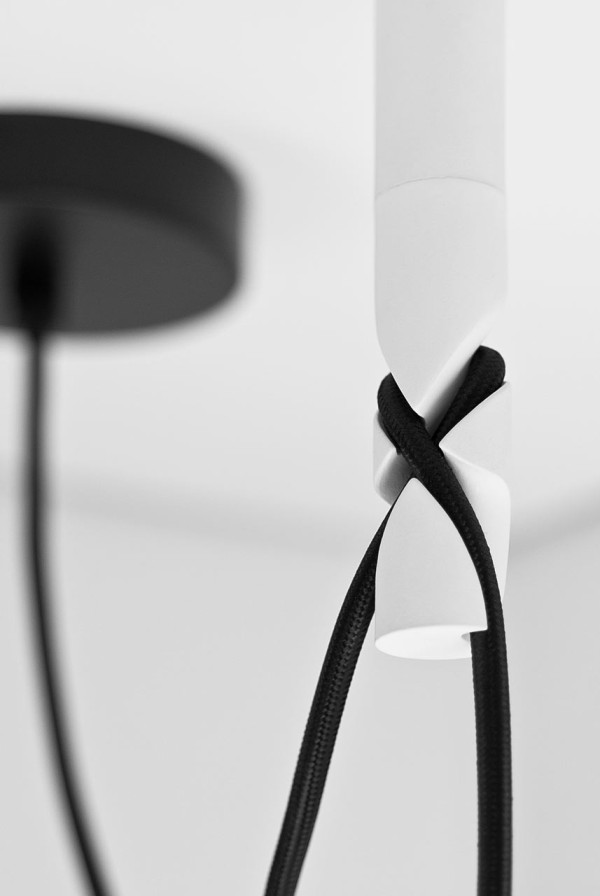 The idea was born out of necessity after Richards’ partner, Dominique Hunter, asked him to create a new way to hang her pendant lights. In his off time, Richards came up with a solution that didn’t require a knot, clamp, bolt, screw, or clip to hang pendants and instead had the cable elegantly wrapped around the new cylindrical design. The hook is notched out to allow the cable to wrap around it in an X like fashion which holds it in place.