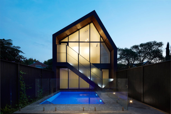 b.e architecture’s Canterbury Road Residence project involved an extension and renovation to a traditional Victorian home in Middle Park, Victoria, Australia. They maintained the look of the front facade, while around back the new extension got a more modern, straight-lined look.