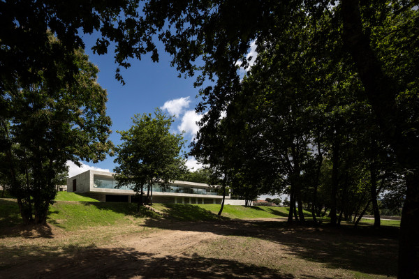 The Sambade House is a Portuguese residence built in the countryside of Penafiel, Portugal. Designed by spaceworkers, the long, rectangular volume stretches along the green landscape while adjusting to the uneven ground.