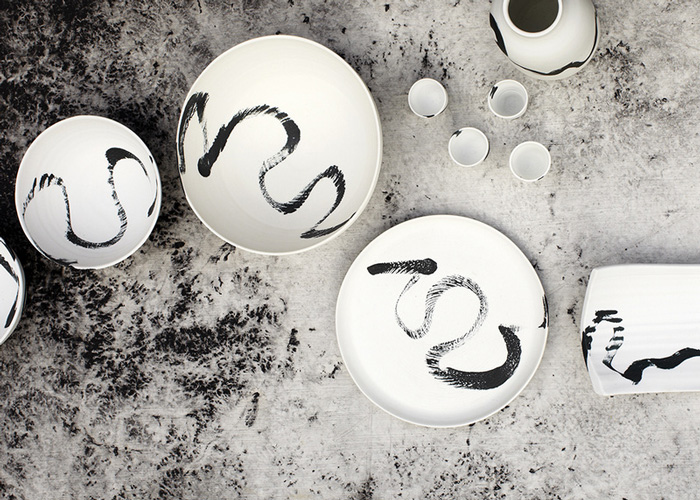 Captured by Australian ceramic artist, Andrei Davidoff ‘s, smoke-curl brushwork on his white porcelain pieces. The calligraphy-like strokes and the dark stoneware clay in the series would create a pop against any item or food placed on them.