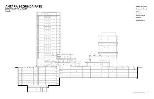 From the architect. The urban regeneration that triggered the mixed use Antara development with its first phase (2006) was one of the most important actions in the northwestern part of Mexico City. It provoked a new urban condition completely changing the profile of the area, increasing its real estate value, re-densifying the area and boosting capital investment. Continuing with this same vision Antara develops the second phase of its master plan divided into two stages: (1) Antara I Corporate Building and (2) Antara II Corporate Building. They are next to each other, and are located in the northwestern part of the project.