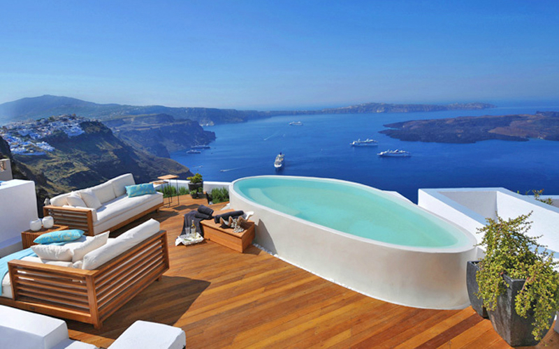 Aqua Luxury Suites is a small boutique 5* sea view hotel, facing the caldera and the volcano, in Imerovigli, Santorini, one of the top destinations in the Mediterranean. Built amphitheatrically on a hillside at the Caldera, it consists of 3 wonderful complexes in very close distance to each other, featuring 9 white-luxury suites & 1 apartment. The Aqua main complex & the complex B, offers superb panoramic sea view of the entire bay of Santorini and the volcano and is ideal for couples and honeymooners.