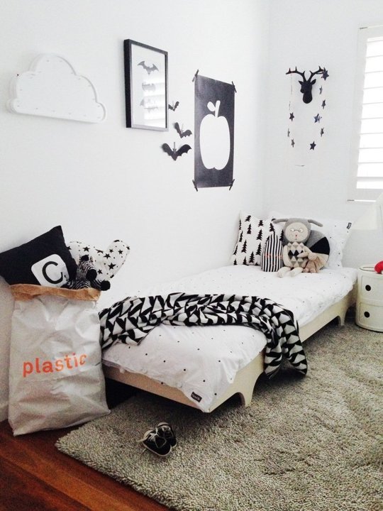 Archie has a very small room and I’ve had to fit as much into the space as I can. I went for a modern monochrome look and love how this make the space feel bright and airy.