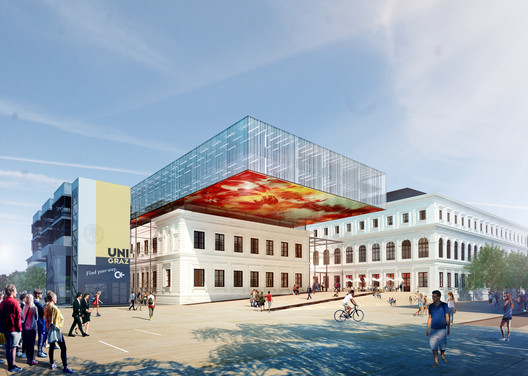 After an international competition, the contract for the extension and renovation of the Main Library at the University of Graz in Austria has been awarded to Atelier Thomas Pucher. The project, located at the heart of the campus, includes the addition of a 430 student auditorium; 650 reading/work areas; study and examination rooms; and administrative and storage areas. Read more about the winning design proposal after the break.