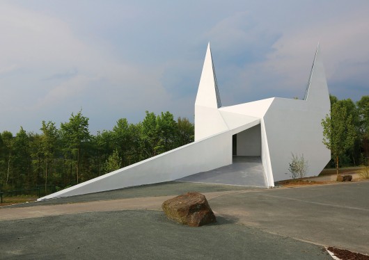 From the architect. In March 2009 schneider+schumacher won a competition run by the Förderverein Autobahnkirche Siegerland e.V, which was founded for the specific purpose of establishing an Autobahn church. The initiative for this project came from Hanneliese and Hartmut Hering, after they had visited an Autobahn church in south Germany. Just one glance at the map revealed that a place like this was lacking in the entire Siegerland area, and consequently also along the very busy A 45 motorway.