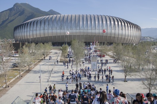 From the architect. Estadio BBVA Bancomer in Monterrey, Mexico is a majestic welcome that draws passionate fans in to a world-class stadium that represents Monterrey‘s heritage and future, while challenging the expectations of what the Latin American soccer stadium experience can be. Inspired by the region’s history of brewing and steel manufacturing, the stadium’s self-supported tripodal structure is purposefully sculptural in form and flanked by rolled steel trusses clad in aluminum, paying tribute to the steels mills that