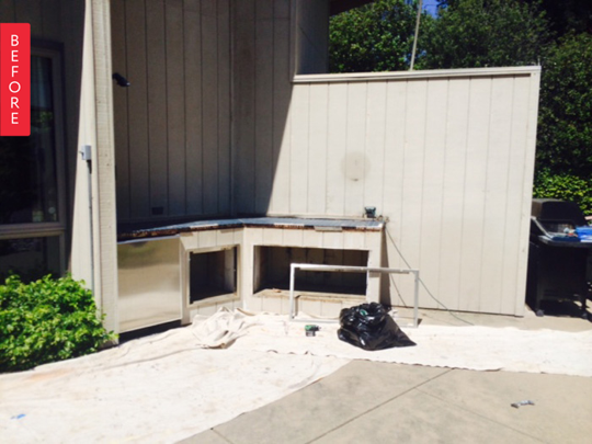 This area of Leslie’s backyard where her grill lived was lacking. But not wanting to pay exorbitant custom kitchen cost, she found functional and stylish workarounds to create that custom look— with a lower price tag.