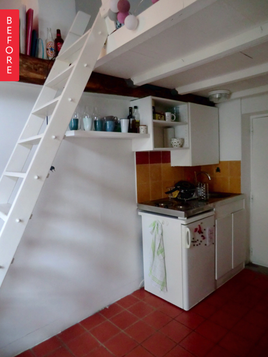 Maïla’s tiny Paris apartment was lacking both a dining table and counter space. When her woodworker father heard she was thinking of going without a proper place to eat for more prep area, he came up with a genius small space solution: