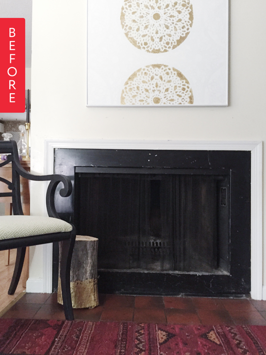 Jess’ rental had a beat up fireplace that was a bit of an eyesore in the middle of her living room. She found the perfect low-cost way to give it some glamour, with a classic renter’s trick that we love: