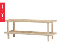 Janet was looking to replace her IKEA LACK coffee table with something with a little more style. She saw some potential in an unlikely find — the BABORD shoe rack.