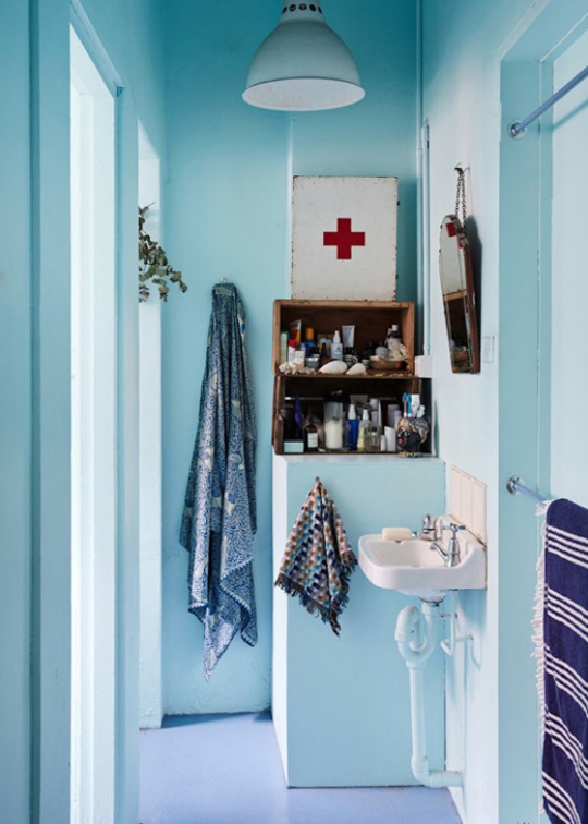 White is a pretty common color for bathrooms — but fortunately for those of us who love cheerful hues, it’s not the only color. Here, for your inspiration, is a roundup of 12 bathrooms painted in every color of the rainbow.