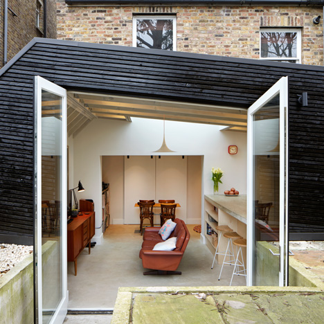 Strips of black-stained timber give a charred appearance to this extension to a north-west London flat, designed by Fraher Architects to create a bigger kitchen for a client who loves to cook (+ slideshow). (more…)