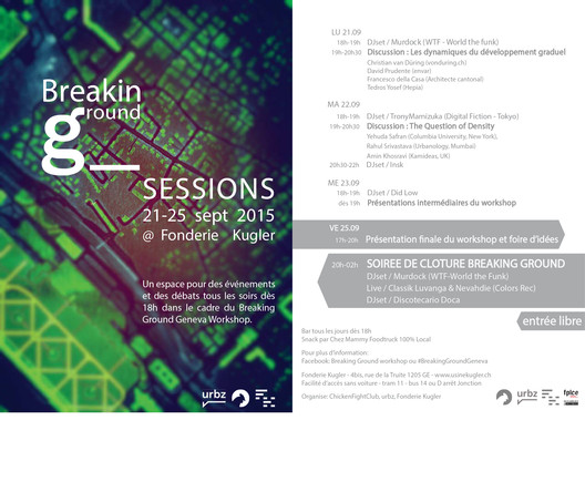 A workshop on the gradual urban development of Geneva will take place from September 21st to September 25th, 2015 at the Fonderie Kugler.