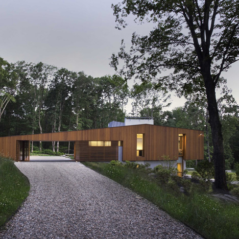 The living and dining rooms of this house overlooking a river valley in Connecticut, USA, are contained in a timber-clad box raised up by concrete buttresses (+ slideshow). (more…)