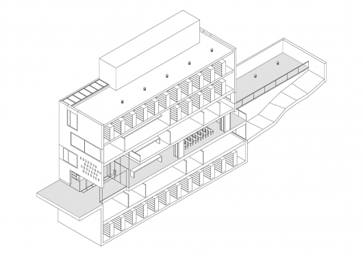 The contrast between solids and voids is regulated by the layout of the openings, as these let in the necessary light only to the areas that require it. That is, where the program most needs it, balancing the functional and the formal.