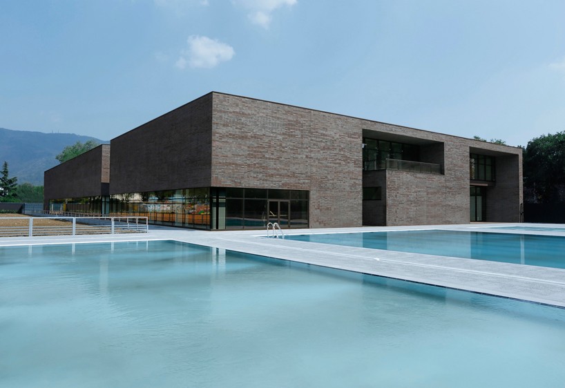 The post camillo botticini architetto clads entire brescia swimming center with black brick appeared first on designboom | architecture & design magazine.