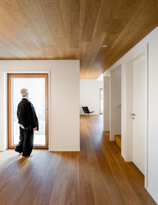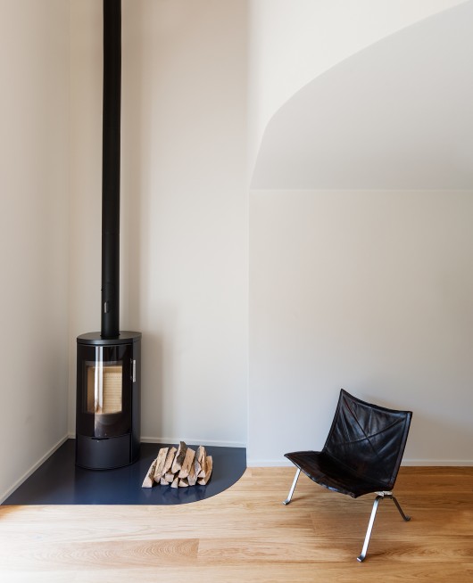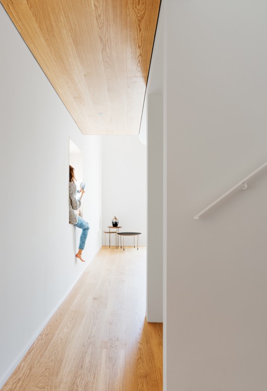 The interior of the building was totally emptied and completely rebuilt. The technical room, laundry, guest bedroom are located on the ground floor where as the kitchen and living area are on 1st floor. The master bedroom and its bathroom are on the top floor.