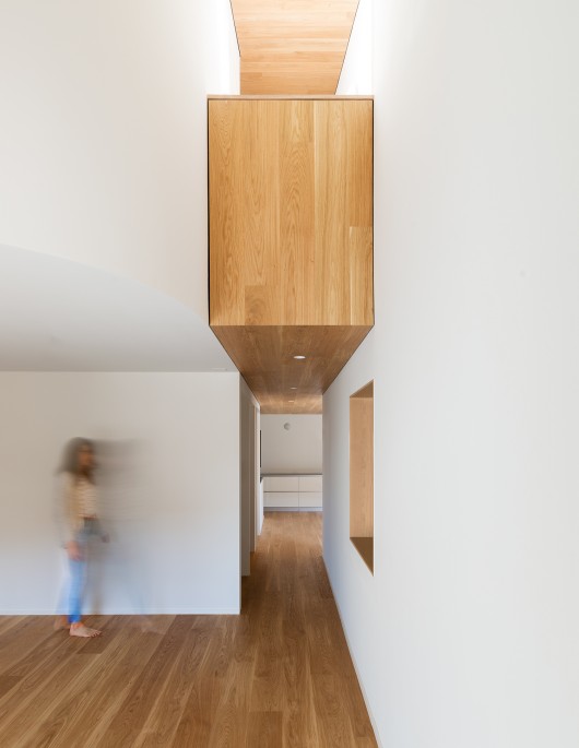 Wood is applied as the main finishing material; it is used like a coating that wraps the spaces and increases the perception of being enclosed in a private, warm and domestic environment.