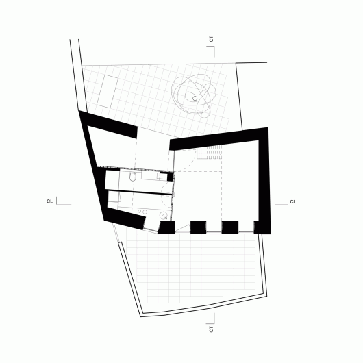 Since we wanted to do a single object in communication with the main property, we did a single cut in the object create an opening. This cut was carefully chosen in order to achieve the best shape relation between the two old houses.