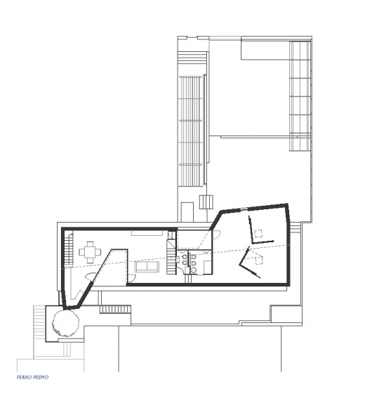 From the architect. A building at the ground floor 5 meters wide and 20 long with generous walls of lava stone stands on a shaped core of lava, residue of buildings massive ’70s; only two openings diagonal, north-east towards the gardens of the district, south-west to a glimpse of the city.