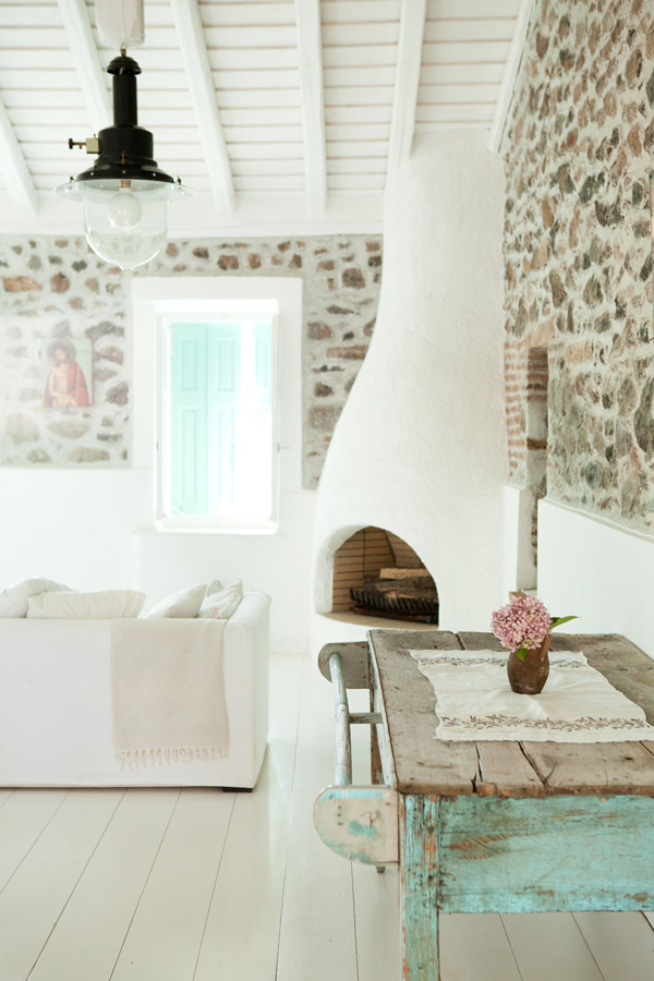 This is a guest house belonging to Claire Lloyd, a British photographer who left foggy London behind, seven years ago, and started a new life on the Greek island of Lesvos. In 2007 Australian author, photographer and designer Claire Lloyd and her British partner, artist Matthew Usmar Lauder, left behind the busy, glamorous London arts scene to explore a new, more simple way of life on the island of Lesbos. They bought a small house in a village far from the usual tourist haunts, and then another house on the edge of the same village. Here they have discovered the joys of a close community, the rhythms of the days, weeks, and seasons bound up with the natural world around them, and the lesser known places and pleasures of this, the third largest of the Greek islands. Famed for its history and the grandeur of its rugged landscape, which includes the lagoon where Aristotle founded the science of biology, Lesbos is also remarkably unspoilt. Get her amazing book My Greek Island Home.