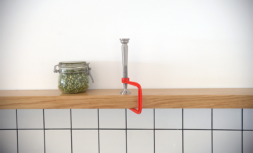 the ‘pamoto candleholder’ by designers dor tal and ofer berman, incorporates a modern interpretation for the use of clamps by applying them to fix lights in place.