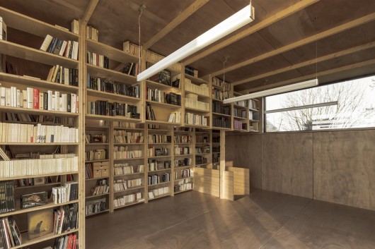 Beyond simply providing a view for its inhabitants and offering a place for evasion, the space also creates a new image within the landscape. It dramatizes an introspective life as incarnated by the library, frames it through the large opening, and decorates it with the surrounding nature.