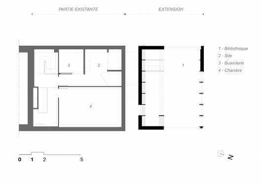 The focalization on this newly unveiled space creates a relationship that tends to make the existing house disappear. The perception of this strange abstract scene, rising ex nihilo, proposes to the observer as well to escape into his own imagination.