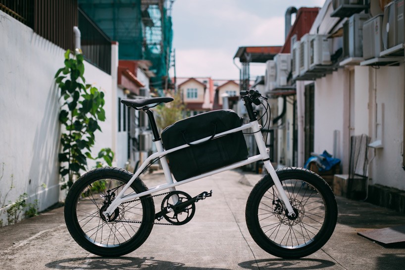 the bike, which is exclusively previewed at SingaPlural 2015, features a space built into its frame, allowing commuters to place their bags within an ergonomically designed cage.