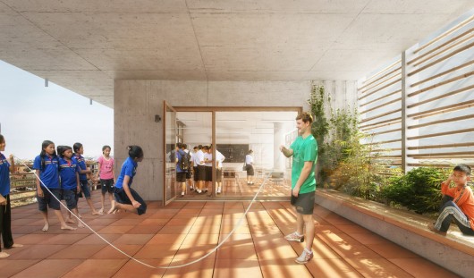 The rooftop will contain both a multipurpose athletic court, as well as a teaching garden filled with local plants and vegetables, which will additionally help to reduce storm water runoff and minimize solar heat gain.