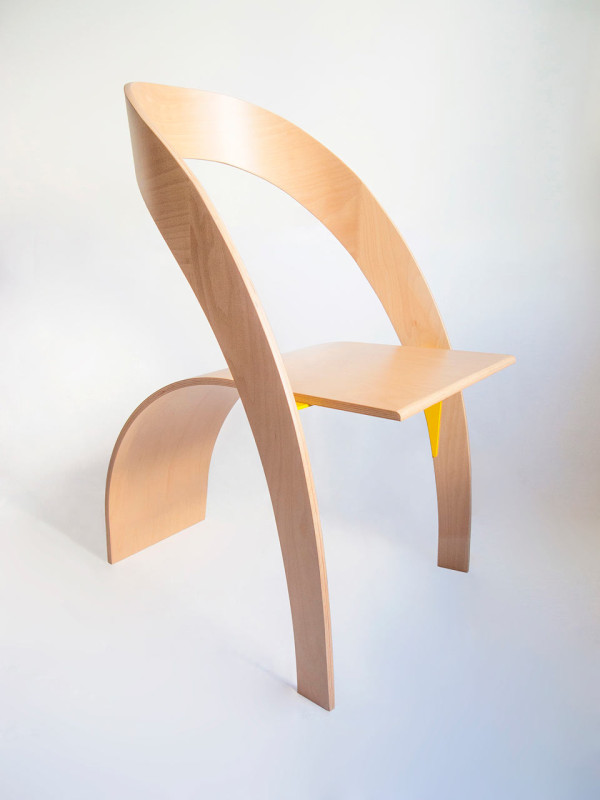 Kaptura de Aer designed Counterpoise, a sculptural plywood chair made up of two curvy components that come together to provide balance. Individually, the parts are just parts, but joined, they become a functional place to sit with its curvaceous lines offering a sumptuous experience.