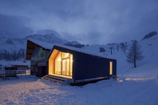 From the architect. LEAPfactory presents the new home of the Courmayeur Ski & Snowboard School. On the slopes of the ski area of Plan Checrouit, right in front of Mont Blanc, LEAPfactory has just completed the new home of the Courmayeur Ski and Snowboard School; it opened to the public last Christmas.