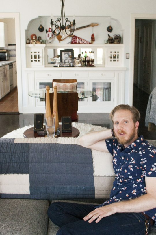 On a street filled with beautiful old homes, David has filled one unit of a beautiful old fourplex with every trinket, memento, and piece of quirky art that can fit under one roof. Of course, it doesn’t hurt that the Spanish revival details ooze charm; the beauty of the windows, the arch between the living and dining rooms, the fireplace, and the gorgeous hardwood floors cannot be overpowered, even by David’s extensive collecting habit.