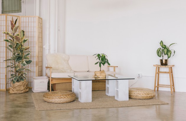 We’re big fans of low-cost, no-tools-required DIY projects; here’s a good one spotted in the downtown LA showroom of designer Shaina Mote: a simple concrete cinder block coffee table with a glass top.