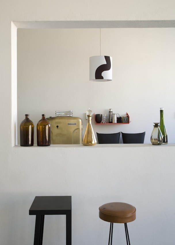 Simple white lampshades made interesting with a swirl of black paint in the home of Johannesburg artist Kudzanai Chiurai, easily replicated with a can of paint and a brush.